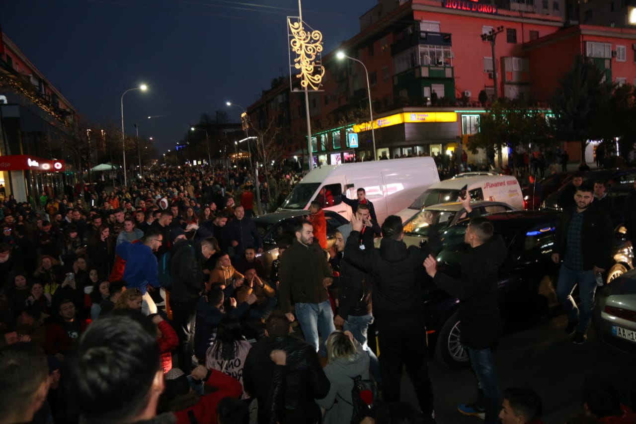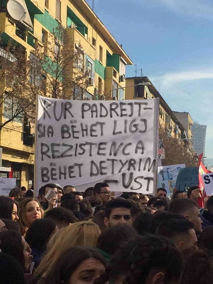 13:39 /”Një fëmijë që fle rritet, por nëse një popull fle ai vdes. Ne nuk do të flemë. Kush s’kërcen nuk është shqiptar o hej, kush s’kërcen o hej. Nëpër shekuj nëpër mote asnjëhere s’u hoqëm zvarrë. Dhe po të vritem 12 herë jam krenar që jam shqiptar.” kane nisur te brohorasin studentet ne kor, pasi nje prej tyre iu drejtua turmes, ndersa me pas shperthyen ne kor duke kenduar himnin kombetar”