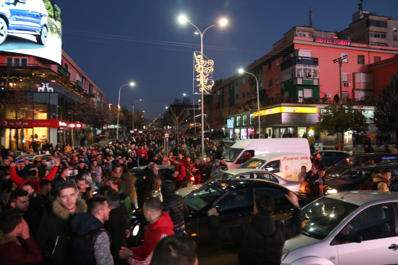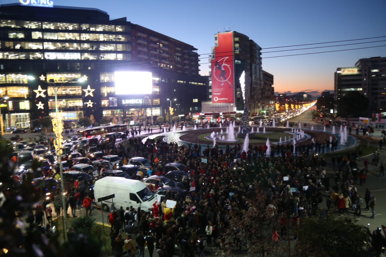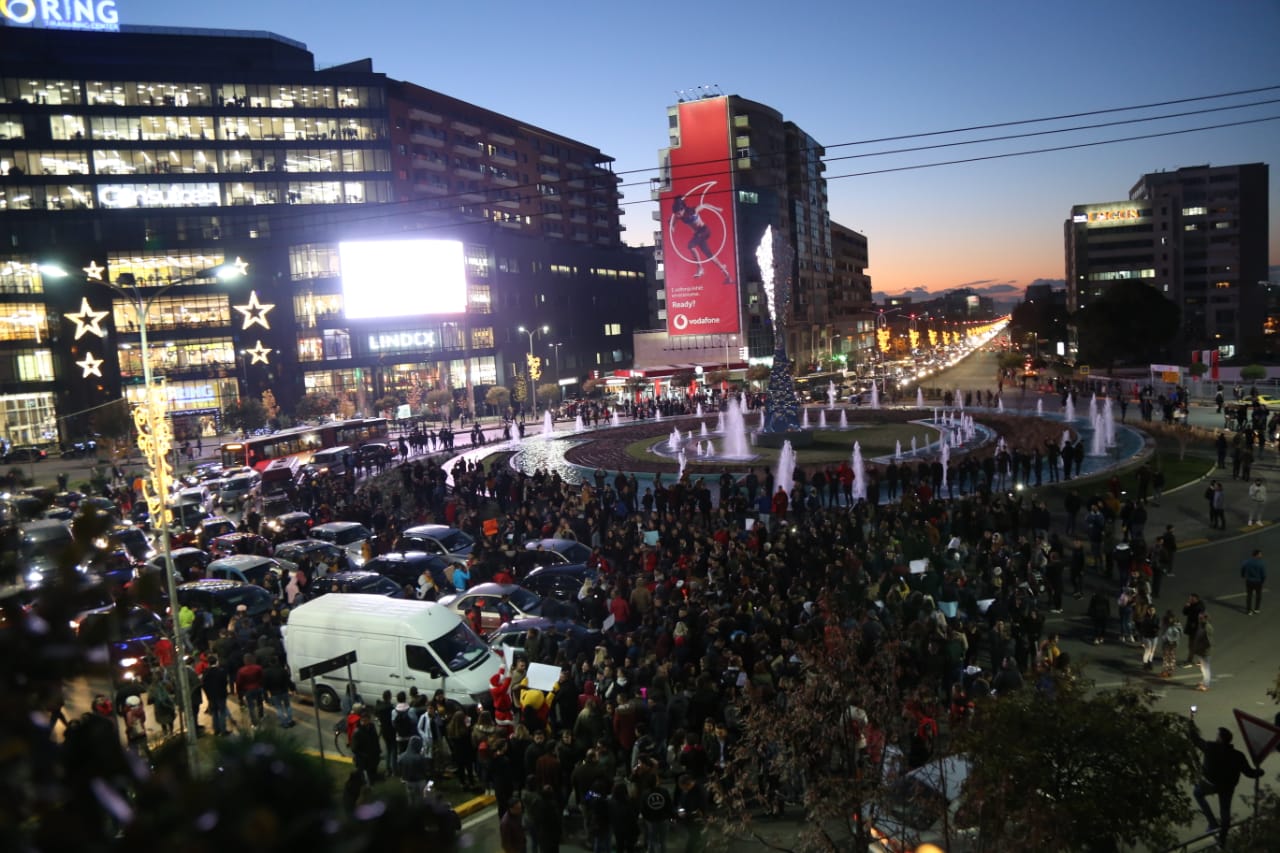 Ora 16:34 Studentet po marshojne drejt Zogut të Zi, duke nisur keshtu edhe masën e pare te pershkallëzimit të protestës, bllokimin e rrugëve.