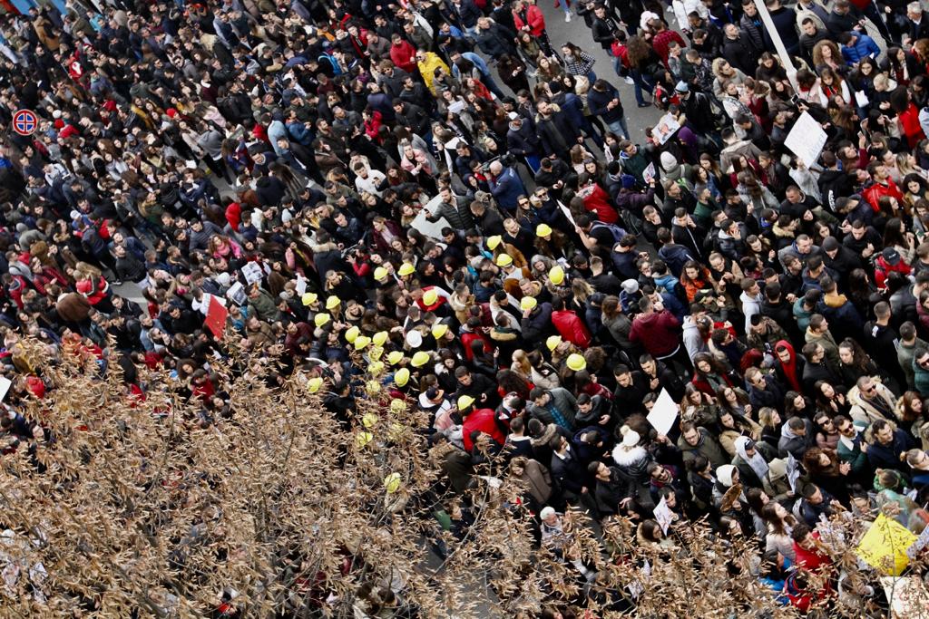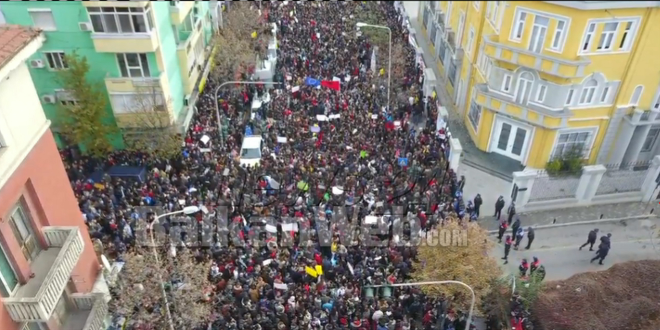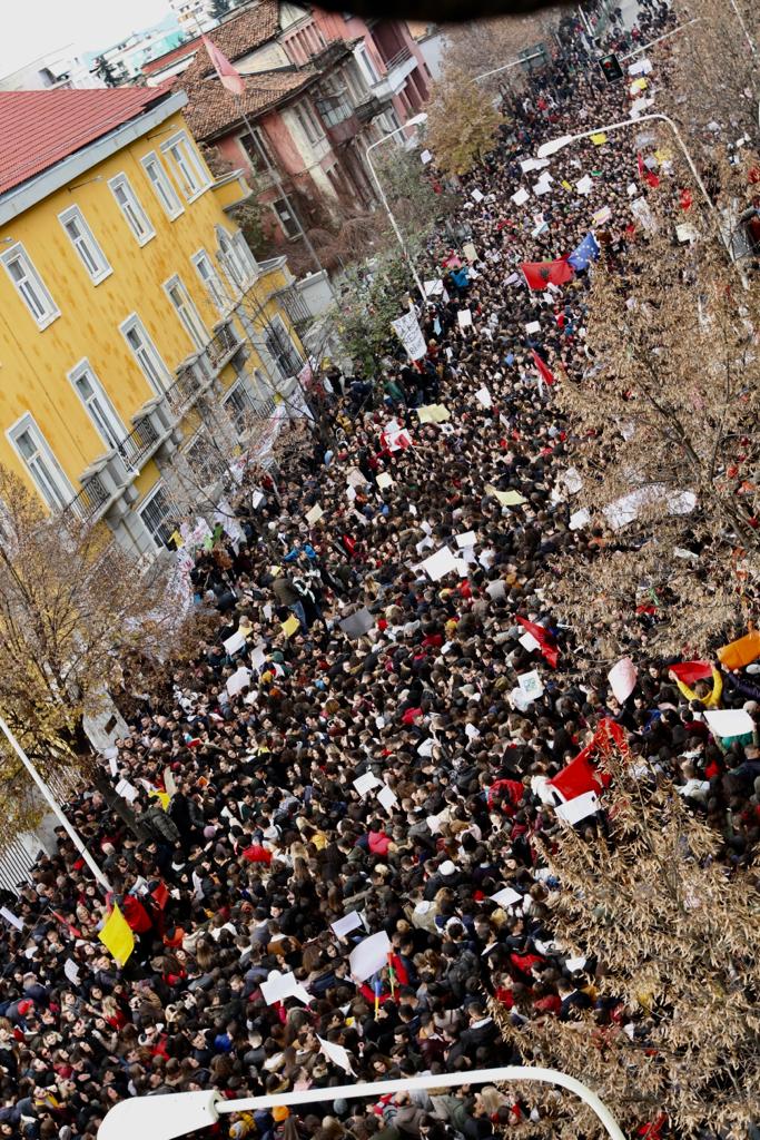 Rrugët e Tiranës janë mbushur si asnjëherë më parë me të rinj e të reja që kanë nisur një lëvizje të madhe për plotësimin e kërkesave të tyre. “BalkanWeb” sjell pamjet nga qielli të protestës të filmuara me dron. Mijëra të rinj e të reja me flamuj shqiptarë, amerikanë apo edhe BE dhe me parulla të shumta në duar kanë bllokuar rrugët. Studentët i kanë drejtuar 8 kërkesa qeverisë, kanë larguar çdo element partiak nga protesta duke mos pranuar politizim dhe i kanë lënë qeverisë ultimatum për plotësimin e kërkesave deri në orën 16:00 të ditës së sotme.