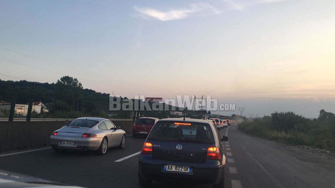 TIRANE – Radhë të gjata kilometrike janë shënuar pasditen e sotme në autostradën Tiranë-Durrës. Një varg i gjatë makinash duket në pamjet e siguruara nga BalkanWeb që presin në radhë.