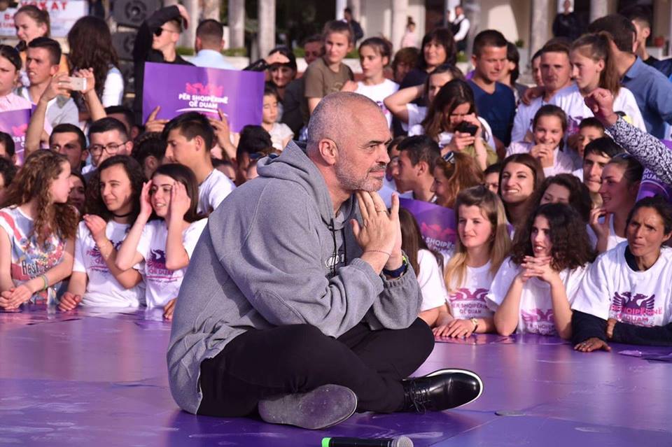 Mes brohërimave të shumta, i pari i qeverisë kërkoi që në një moment disa të rinj që ndodheshin në vijën e parë të podiumin të pushonin për një sekondë. Teksa i bindte ata që të ndalonin, Rama nuk kurseu as batutat.