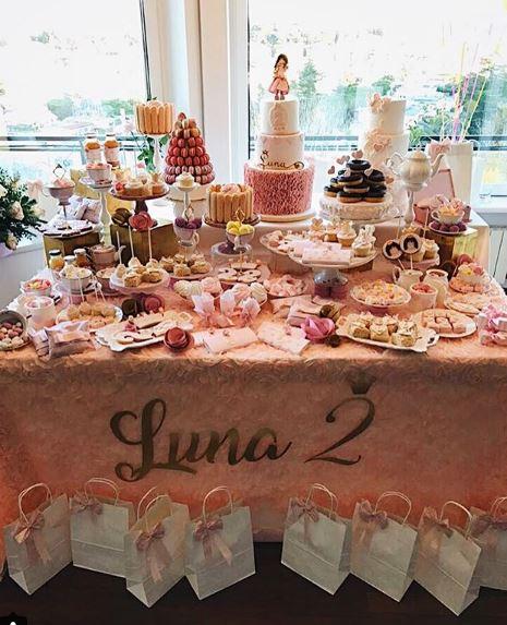 Shumë tullumbace dhe tavolina të pasura me ëmbëlsira për të voglën e shtëpisë. Ja disa foto nga dekori i festës.