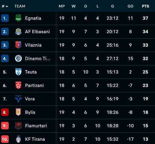 Egnatia kryesuese është mposhtur 1-0 nga Vllaznia, me një rezultat që ndal ecurinë e rrogozhinasve dhe u heq shansin për arrati të mëtejshme ndaj ndjekësve. Paralelisht, shkodranët kthehen në garë për vendet më lart tyre në renditje, duke parë edhe ndalesën e Elbasanit të vendit të dytë në barazimin 1-1 ndaj Flamurtarit.