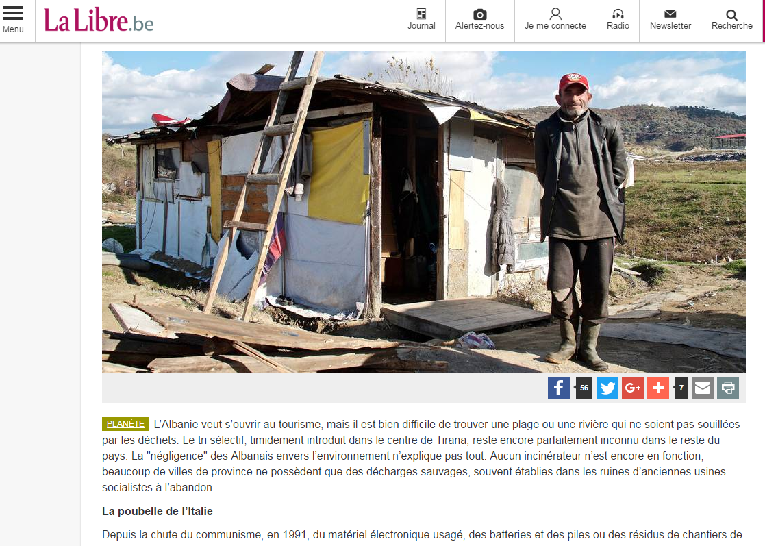 Gazeta e përditshme belge “La Libre Belgique”, i ka kushtuar një reportazh çështjeve të mbetjeve në Shqipëri. Duke sjellë një panoramë të niveleve të mëdha të ndotjes dhe keqmenaxhimit të mbetjeve, në reportazh jepen edhe këndvështrimet e ndryshme në lidhje me ndryshimet ligjore për çështjen e importit të mbetjeve në Shqipëri.