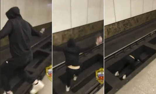 Alexey Derbilov, 19 vjeç, u fut në një boshllëk në pistën e stacionit të metrosë Vystavochnaya në Moskë, dhe më pas treni i kalon përsipër.