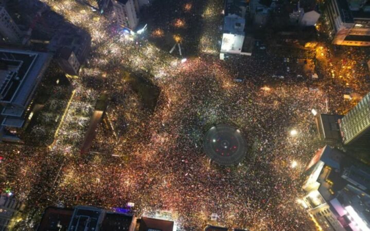 Qindra mijëra njerëz u mblodhën në Sheshin Sllavija në qendër të Beogradit.