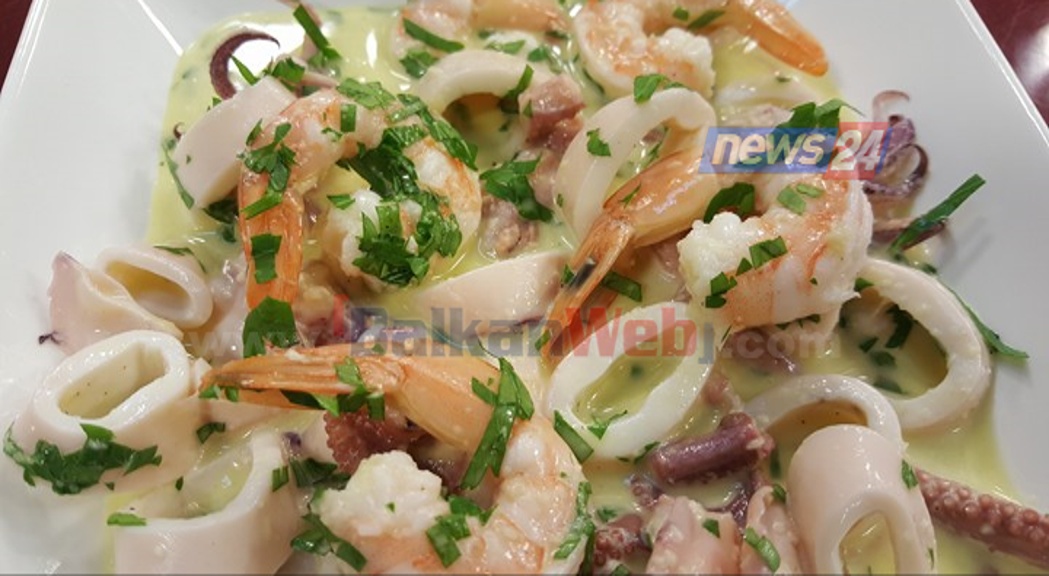 Në një mikser vendosim hudhrat, lëngun e limonit, vajin e ullirit, kripë dhe piper të zi. I miksojmë derisa të formohet një salcë të cilën e shtojmë në tasin me fruta deti, i mbulojmë dhe i lemë të marinohen 2 orë minimumi. E shërbejmë më pas sallatën me bukë të thekur duke e spërkatur me majdanoz të freskët.