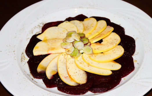 Panxharin e qërojmë dhe e kalojmë në rende dhe e vendosim si shtresë të parë për sallatën në një pjatancë. Qërojmë karrotën dhe atë e kalojmë në rende gjithmonë nga pjesa më e trashë e rendes. Pasi ta grijmë dhe karrotën e vendosim mbi panxhar si shtresë të dytë. Vazhdojmë të njëjtin veprim dhe me mollën por pa e qëruar vetëm e lajmë mirë dhe pasi e përfundojmë grirjen e spërkasim me lëng limoni që të mos na oksidohet, më pas e vendosim në qendër të sallatës mbi karrota. Në një tas të vogël trazojmë mjaltin me mustardën, uthullën, vajin e ullirit, kripën dhe piperin e zi. Marinojmë sallatën me salcën e përgatitur dhe në fund e spërkasim sallatën me fara lini dhe fara luledielli.