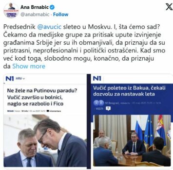 Kështu shkruan ish-kryeministrja serbe Ana Barnabic, në rrjetin social X, duke iu referuar komenteve në rrjetet sociale në ditët e mëparshme, si dhe titujve kryesorë të mediave opozitare, të cilat thanë se Vuçiç nuk ishte në gjendje të keqe shëndetësore, por “po kërkonte një justifikim për të mos shkuar në Moskë”.
