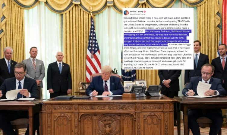 “Gjatë mandatit tim të parë, Serbia dhe Kosova ishin shumë pranë luftës, siç kanë qenë për dekada me radhë. Unë e ndala atë,” shkruan Trump në postim, duke kritikuar më pas paraardhësin e tij në Shtëpinë e Bardhë, Joe Biden.