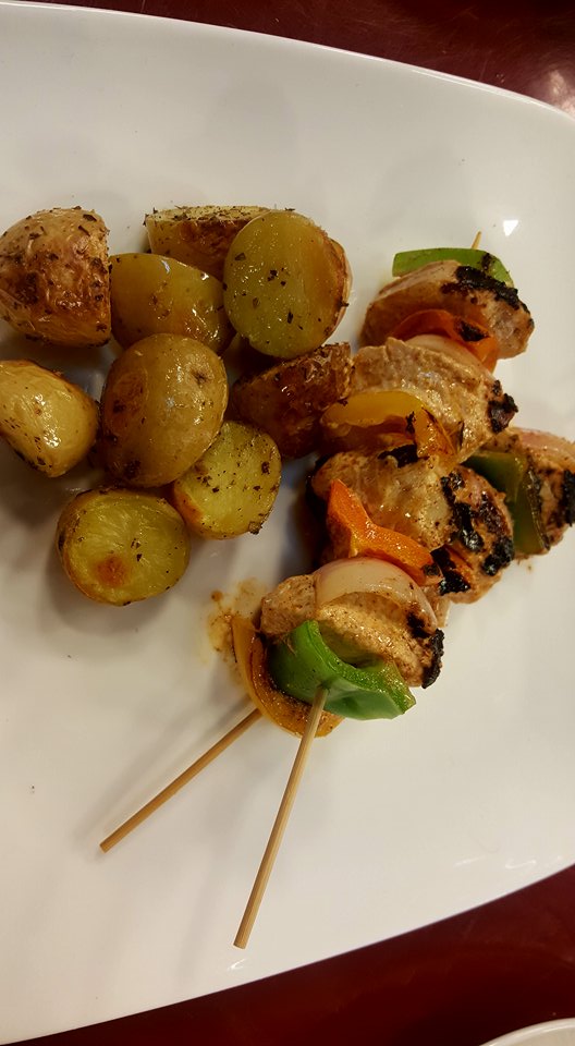 Fillimisht përgatisim marinadën, trazojmë në një tas kosin me miks erëzash, lëng limoni, kripë, piper të zi, vaj, piper të kuq, sipas shijes mund të shtoni dhe pak spec pikant. Lajmë, thajmë mishin dhe e presim atë në kubikë dhe më pas e shtojmë në tasin ku kemi përgatitur salcën. E lemë mishin e pulës të marinohet në frigorifer për 30 minuta. Presim specat dhe qepët në copa mesatare. I alternojmë të gjitha në shkopin e shishqebapit mund të vendosim dhe copa domate nëse dëshirojmë. Nxehim tavën, pjekim shishqebapët në furrë ose në zgarë në temperaturën 200 gradë Celsius për 20 minuta.