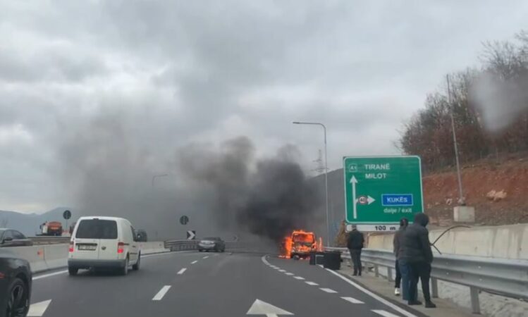 Një fugon është përfshirë nga flakët e zjarrit në rrugën e Kombit, segmenti Milot-Morinë.