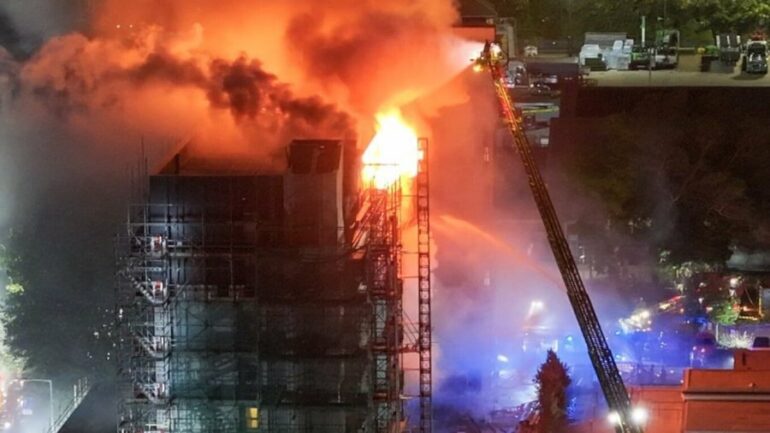 Shërbimi zjarrfikës këshilloi banorët në zonë që të mbanin dritaret të mbyllura për shkak të resë së zezë të tymit.