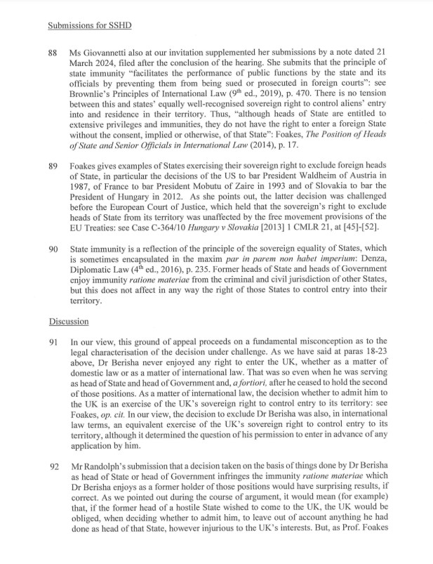 Ish-kryeministri Sali Berisha ka humbur gjyqin kundër shpalljes së tij non grata nga Britania e Madhe. Berisha u shpall non grata nga Londra zyrtare më 22 korrik 2022.