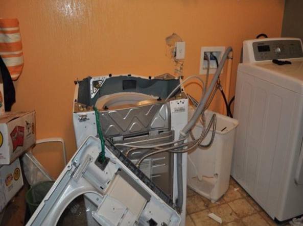 Të dy ata, kanë treguar se shpërthimi ka qenë aq i fortë sa pjesa e sipërme e lavatriçes është ngulur në murin e garazhit ku gjendej lavatriçja dhe gropa e mbetur ishte e dukshme dhe në dhomën ngjitur.