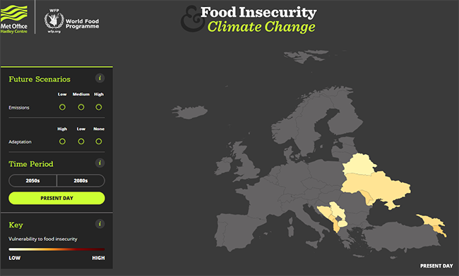 Harta e Sigurisë Ushqimore dhe Ndryshimeve Klimatike, prodhuar nga Programi Botëror i Ushqimit të OKB-së (WFP) dhe Qendra e Hadley Center Met, ilustron se sa përpjekjet e fuqishme të adaptimit dhe zbutjes do të parandalojnë ndikimet më të këqija të ndryshimeve klimatike mbi urinë në nivel global dhe do të ndihmojnë njerëzit të jenë më pak të prekshëm për pasigurinë në ushqim.