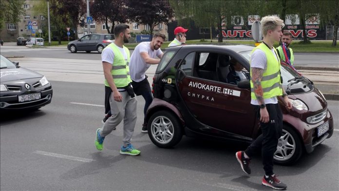 Lubenjak, i cili gjatë 17 orëve ka shtyrë me duar automjetin nëpër rrugët e kryeqytetit të Kroacisë, Zagreb, ka thyer rekordin e mëparshëm prej 83 kilometrash.