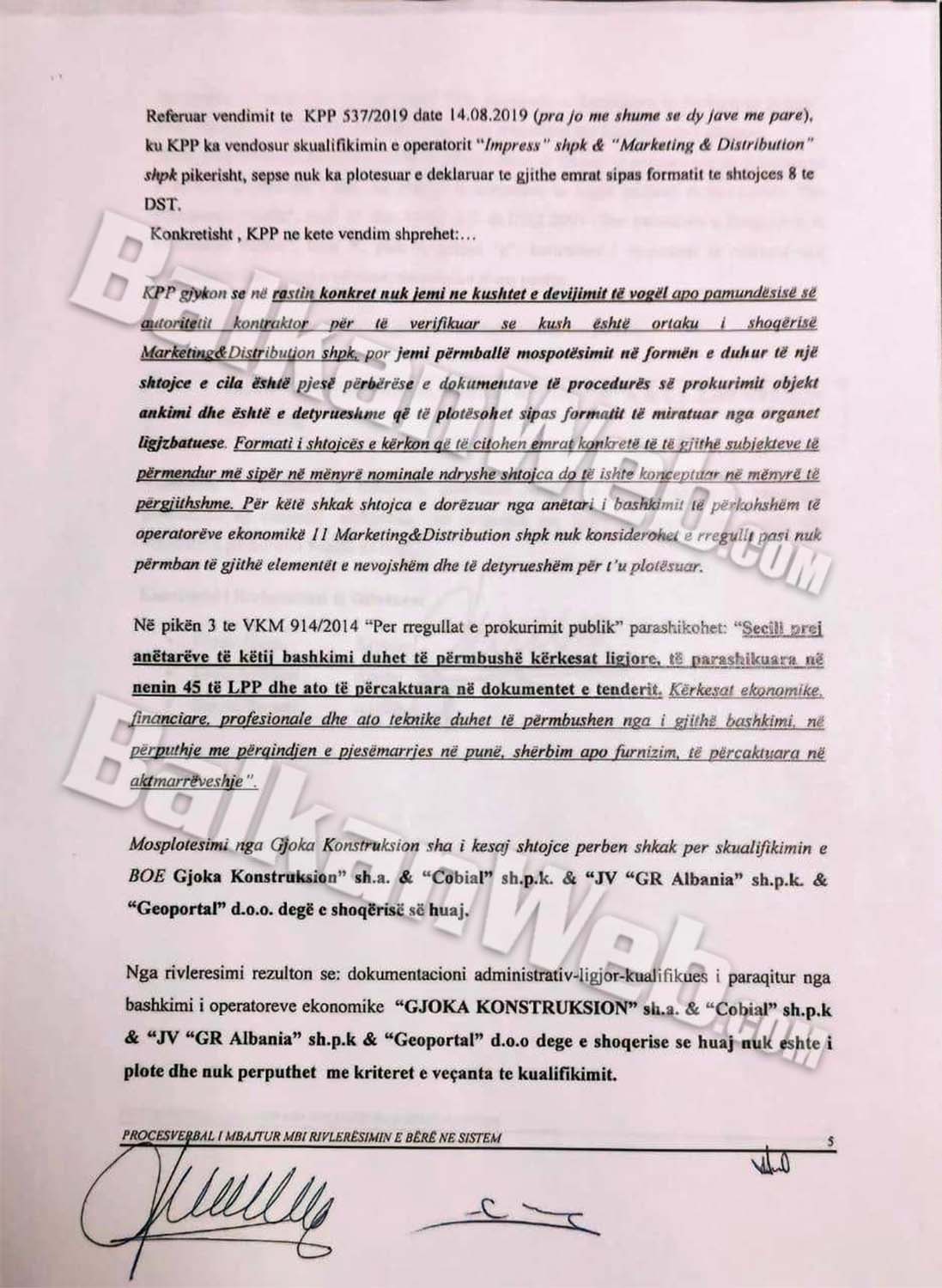 Sipas ligjit, në çdo rast kur vërehen paraqitje të të dhënave të rreme është detyrim taksativ i autoritetit kontraktor të shkualifikojë operatorin që i ka paraqitur ato të dhëna dhe të nisë procedurën e përjashtimit nga pjesëmarrja në prokurimet publike.