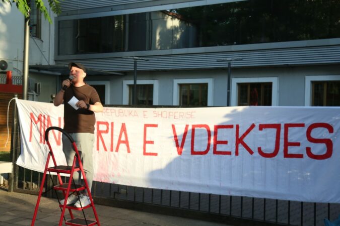 Gazetari Osman Stafa duke marrë fjalën në protestë tha se ajo që po ndodh në këtë spital është krim, është vrasje. Ai u shpreh se gjithë kjo situatë po përpiqet të kalohet duke ua hedhur fajin mjekëve, ndërkohë që ata janë hallka e fundit.