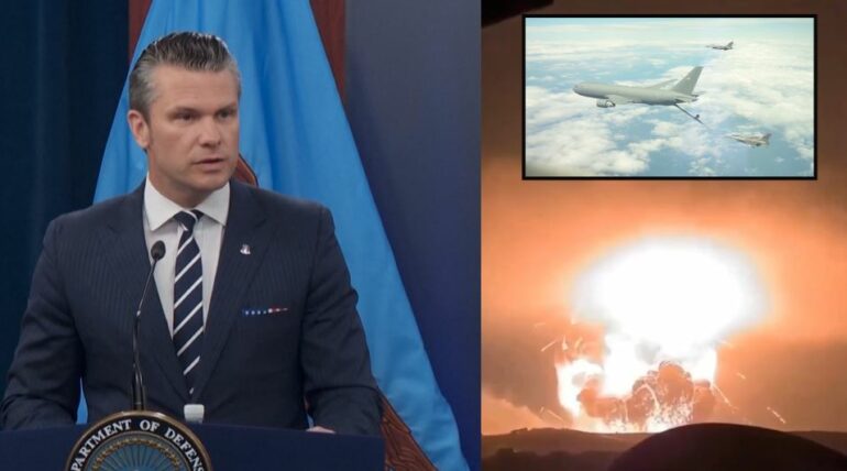 Sekretari i Mbrojtjes, Pete Hegseth, e hap konferencën për shtyp duke thënë se forcat amerikane kryen një sulm preciz në mes të natës kundër tre objekteve bërthamore në Iran.