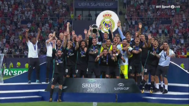 Real Madrid fiton për të katërtën herë në histori trofeun e “Superkupës së Europës” pasi mundi anglezët e Manchester United me rezultatin 2-1.