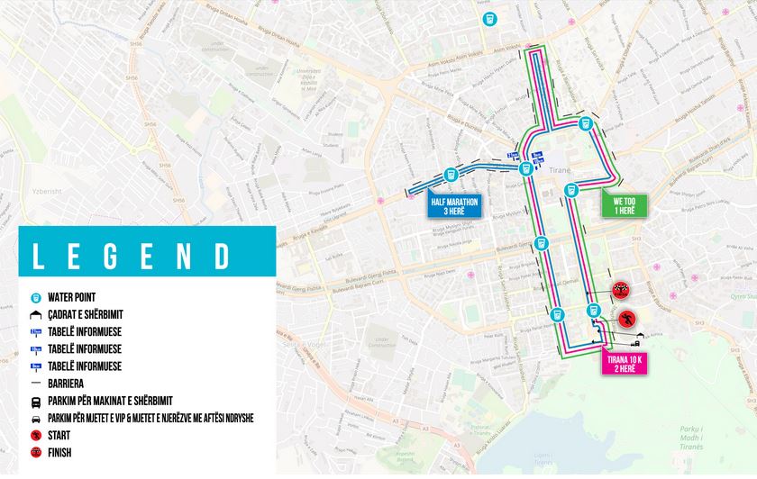 Gjysmë Maratona e Tiranës zhvillohet në 3 kategori: 21 km; 10 km dhe “We too”, gara për persona me aftësi ndryshe.