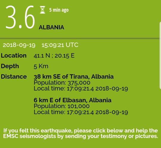 Tërmeti ishte me magnitudë 3.6 dhe me thellësi 5 kilometër. Lëkundjet janë ndjerë deri në Maqedoni. Edhe natën e kaluar një tërmet me epiqendër në Adriatik pranë Gjirit të Lalëzit lëkundi Durrësin dhe rrethinat.