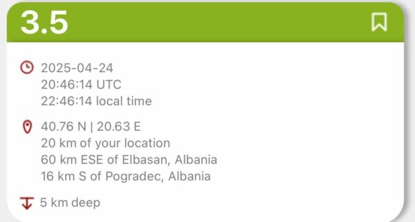 Sërish janë ndjerë lëkundje tërmeti. Kësaj here në Qarkun e Korçë, ku shkalla ka qenë 3.5 ballë.