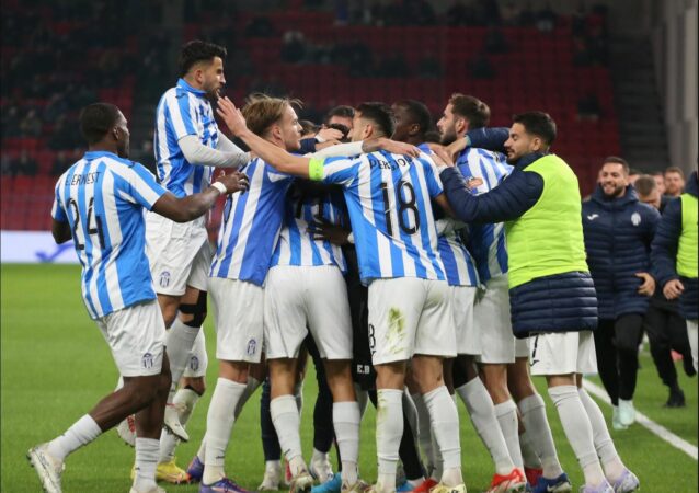 Bardheblutë e nisën ndeshjen në sulm dhe lëshuan sinjale të qarta. Në minutën e 19 Tirana kaloi në avantazh. Sulmuesi francez Zharmuni përfitoi në maksimum nga një top i kthyer pas përplasjes në traversë pas një goditje dënimi, dhe nga fare pranë realizoi me kokë, për të zhbllokuar shifrat.