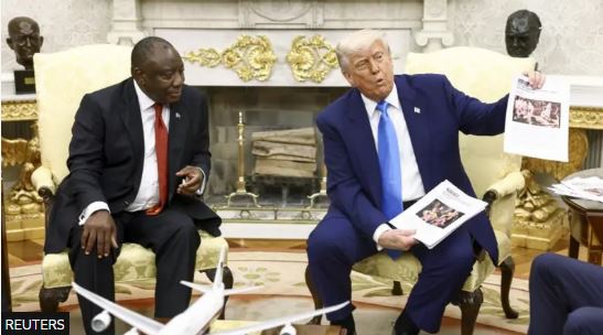 Por gjatë takimit mes Trump dhe Presidentit të Afrikës së Jugut, Cyril Ramaphosa, u shfaqën video, të cilat presidenti i SHBA pretendon se kanë të bëjnë me akuzat për gjenocid në Afrikën e Jugut.