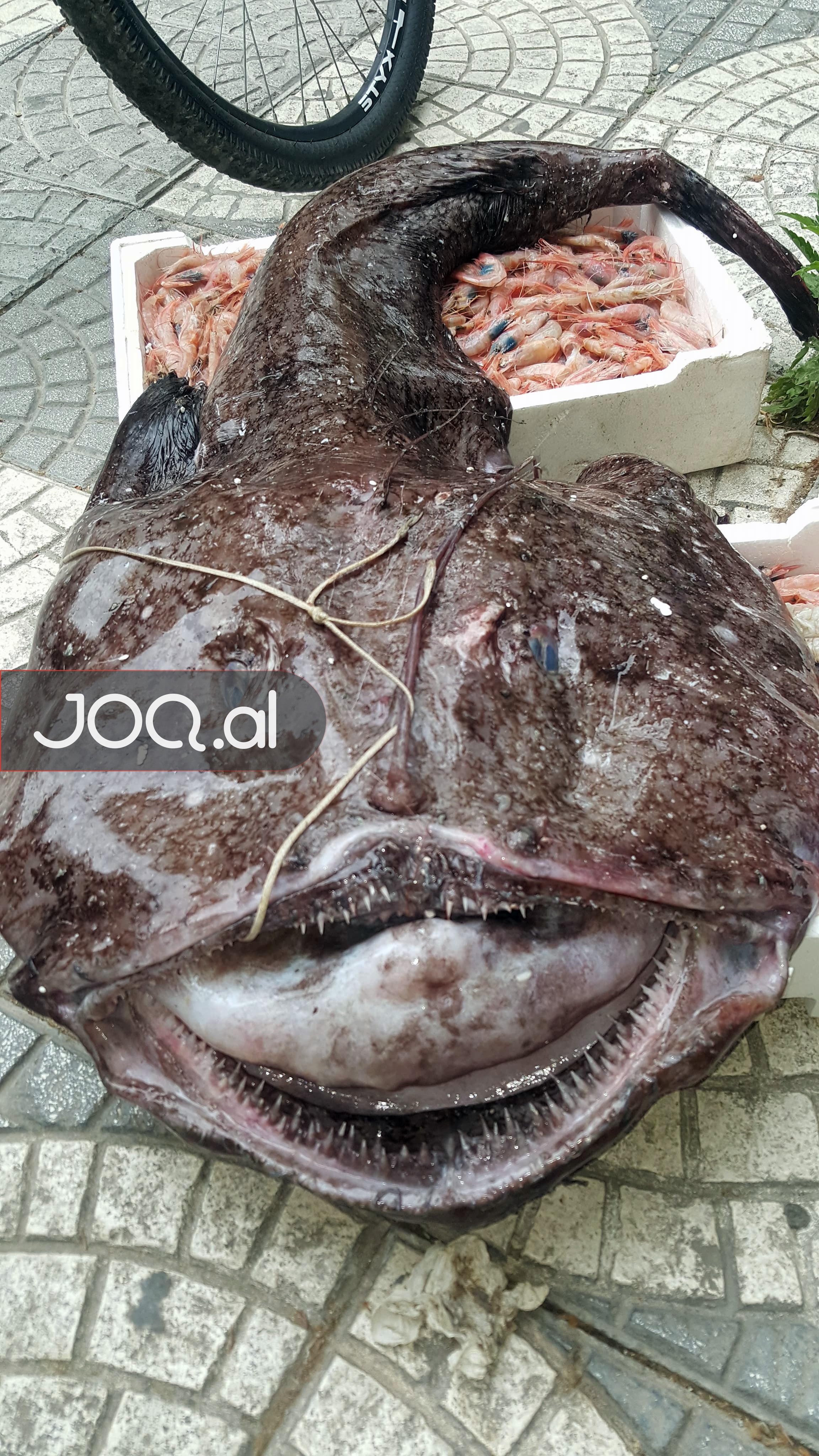 “Përshëndetje “JOQ.al”. Sot në Vlorë në 300 metra thellësi u kap një peshkatriçe 1 metër e gjatë. Dhëmbët i ka të fortë si gozhda dhe jan shume të rralla për t’u kapur. Kafshimin e ka jashtëzakonisht të fortë dhe ka një antenë sipër të koka, e cila është helmuese dhe vdekjeprurëse.”