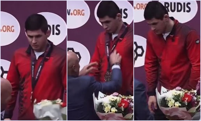Sporti i mundjes është përfshirë në një skandal të vërtetë gjatë ceremonisë së dorëzimit të medaljeve në Kampionatin Europian të zhvilluar në Bratislavë të Sllovakisë. Presidenti i Federatës Ruse të Mundjes dhe Zv/Presidenti i Federatës Botërore të Mundjes, Mikhail Mamiashvili, në momentin e dorëzimit të medaljes së Artë për Chermen Valiev, si Kampion Europe për Shqipërinë, ka bërë një gjest skandaloz, duke ushtruar forcë teksa i vendoste në qafë medaljen dhe më pas duke e shtyrë me duar. Gjatë këtij momenti është dëgjuar edhe fjala ‘tradhtar’ për Chermen Valiev, që ka zgjedhur të garojë për Shqipërinë.