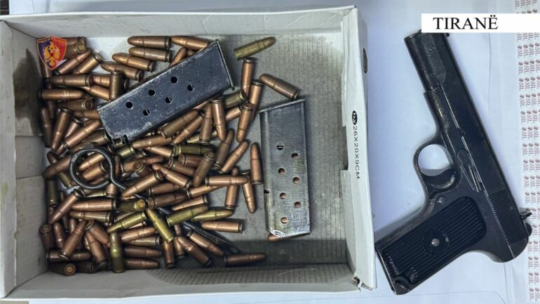Gjatë kontrollit në banesën e tij, shërbimet policore sekuestruan një armë zjarri pistoletë dhe municion luftarak. Arrestimi u krye në kuadër të operacionit të koduar “Reagimi”, ndërsa materialet procedurale i janë referuar Prokurorisë për veprime të mëtejshme.