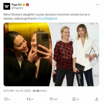 Vajza e Meryl Streep, Louisa Jacobson Gummer, u zbulua si lezbike dhe postoi një foto me partneren e saj në Instagram gjatë fundjavës.