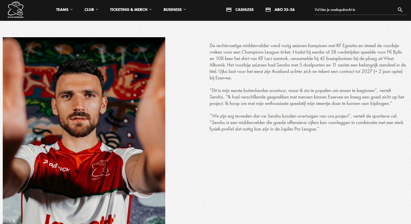 Nga Superiorja largohet jo vetëm Dodaj, por dhe mesfushori i Egnatia, Serxho Ujka. Ndryshe nga Dodaj, Ujka nuk ishte në fushë në atë eliminim të turpshëm që Egnatia pësoi përballë Breidablik. Mesfushori kuqezi bën një hap të madh në karrierën e tij teksa transferohet në elitën e futbollit belg, tek ekipi i Zulte Waregem. Ujka firmosi një kontratë deri në 2027, me opsioni rinovimi edhe për dy të vite të tjera.