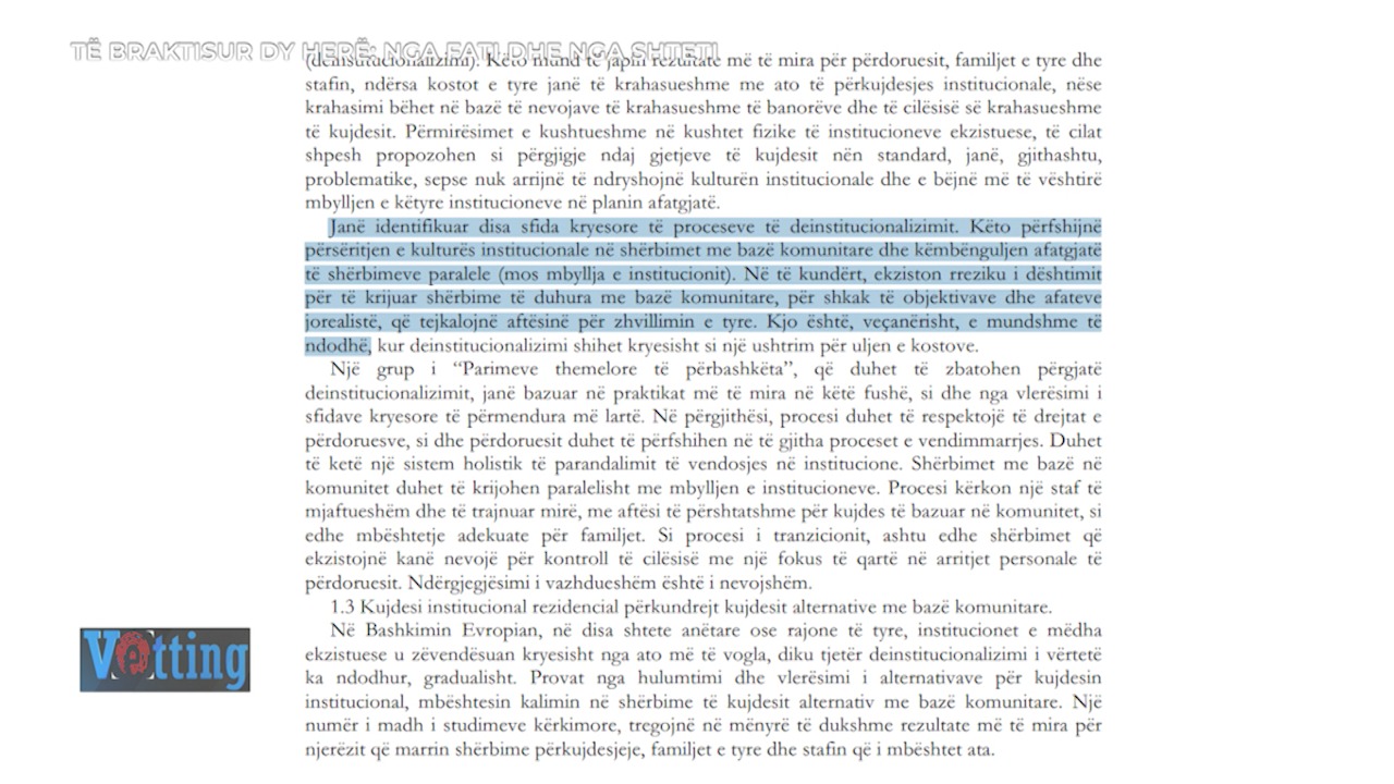 Shtyrja e afatit kohor për zbatimin e planit të deinstitucionalizimit është një element që tregon vështirësinë e këtij procesi, që është një dështim, kostoja e të cilit bie mbi të ardhmen e fëmijëve me nevoja.