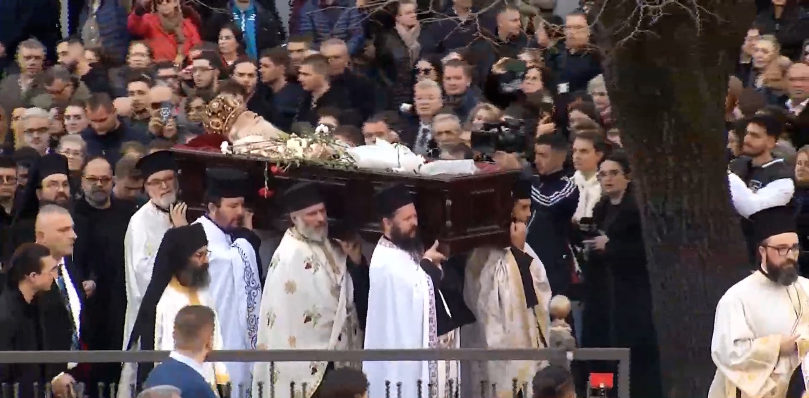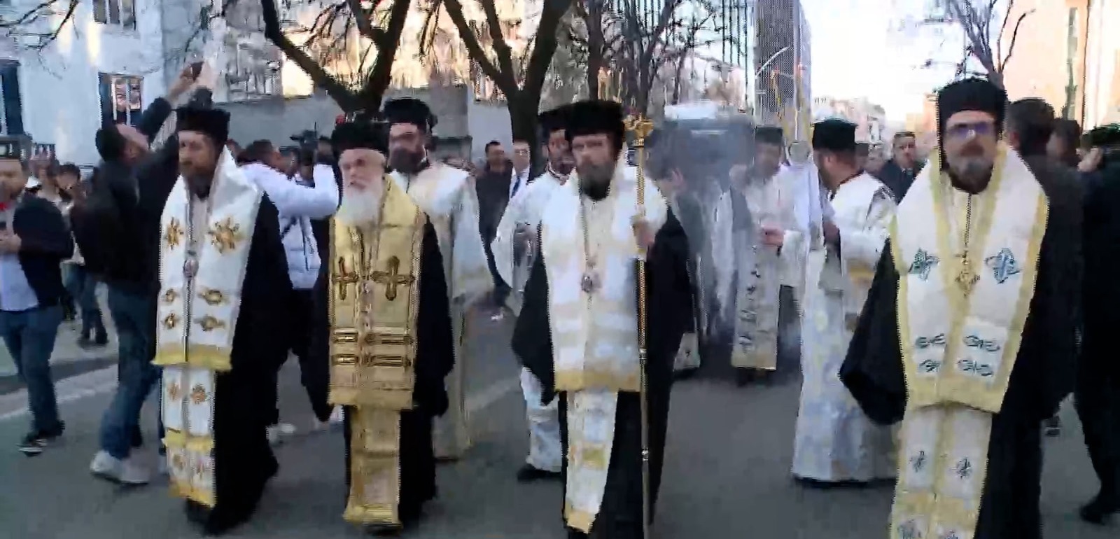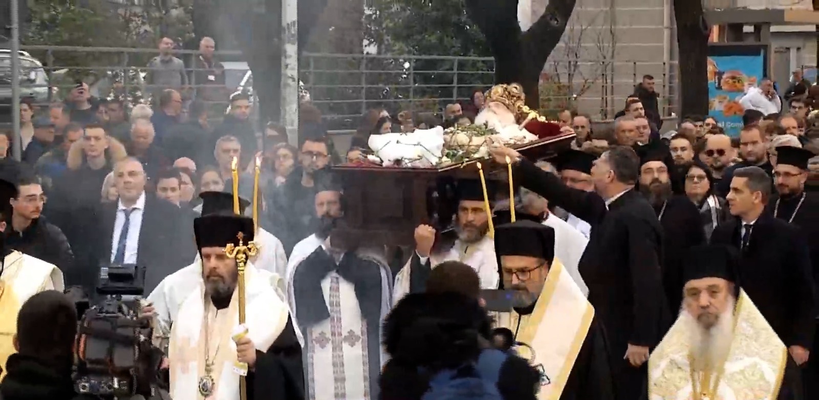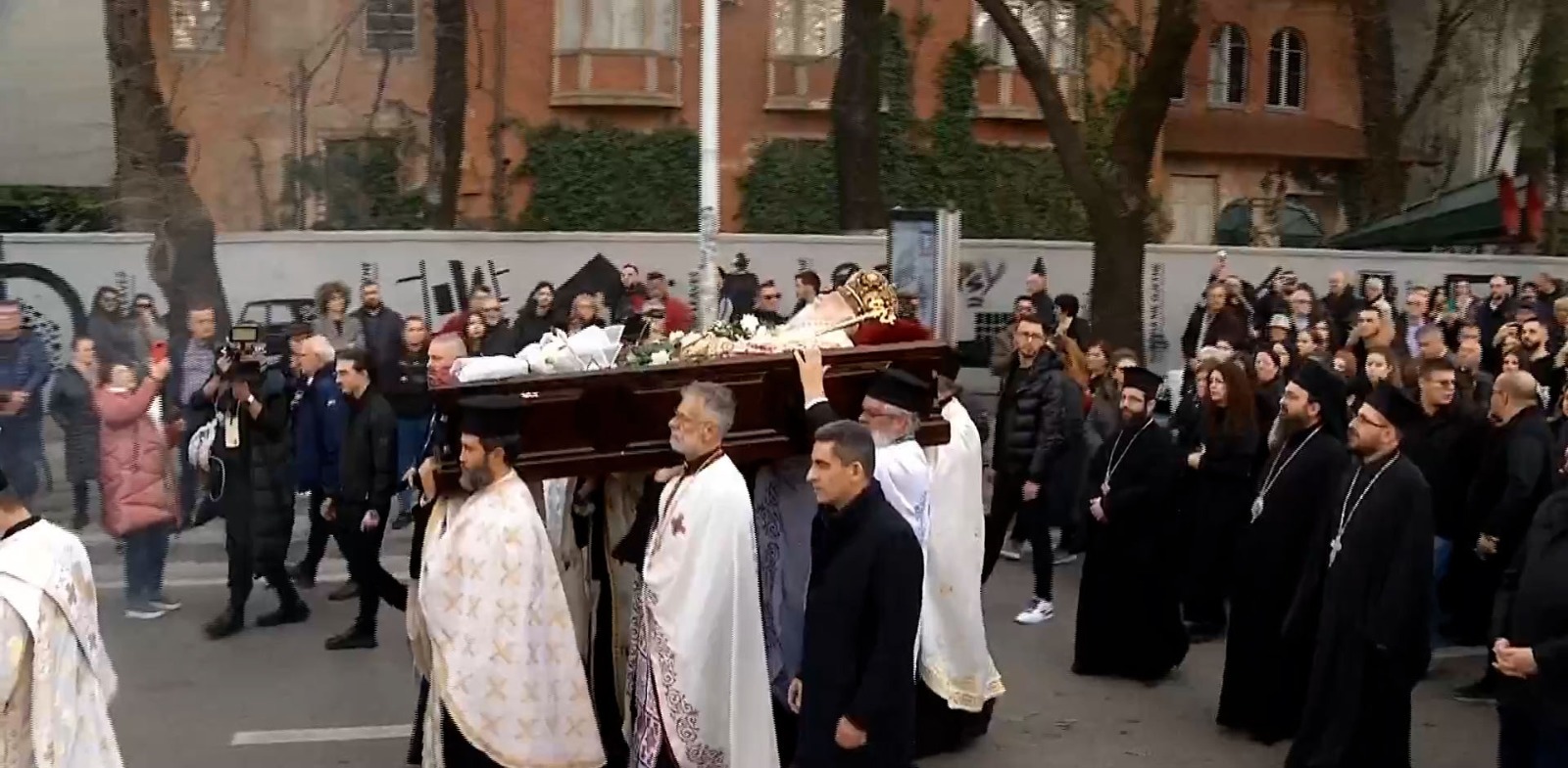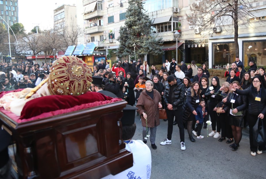 Kambanat e vajit vijuan të binin gjatë gjithë kortezhit ndërsa besimtarët e shumtë e pritën arkëmortin me lule dhe degë dafine të cilat simbolizojnë paqen dhe mirësinë.
