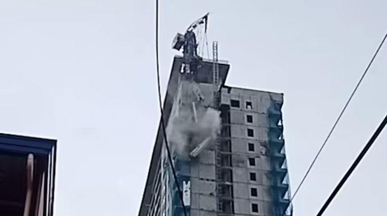 Ky është momenti kur një vinç bie nga maja e një ndërtese të lartë pasi një tërmet i fuqishëm tronditi Filipinet.