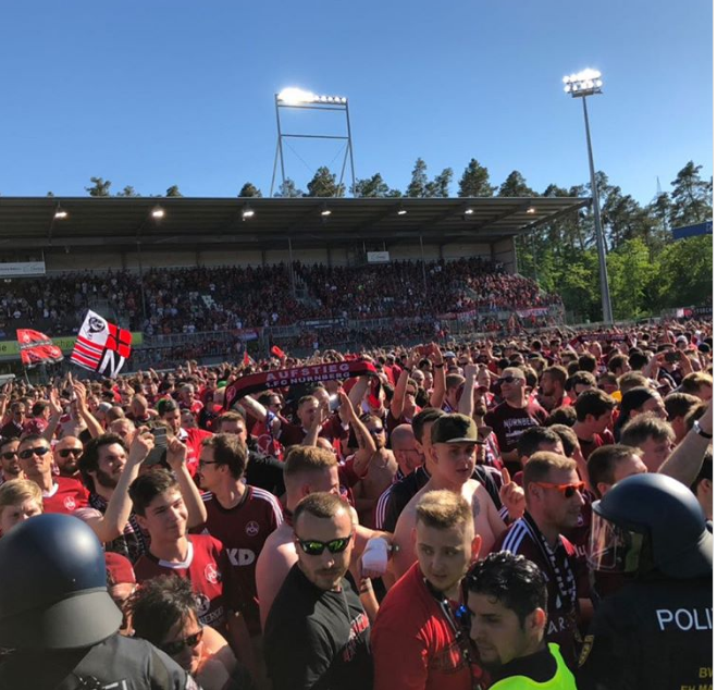 Kjo arritje sigurisht që është dashur të festohet dhe kështu ka ndodhur që pas të dielës kur Nuremberg mposhti 0-2 në transfertë Sandhausen. Por në festën e gjermanëve është vënë re diçka tepër interesante, në një moment ata kanë nisur të këndojnë himnin e Juventusit.