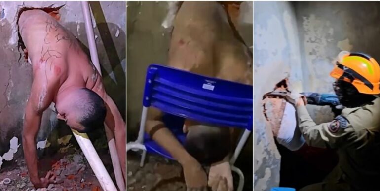 Një i burgosur në Brazil u zbulua i ngecur në një mur betoni, pasi tentoi pa sukses të arratisej nga burgu. Alan Leandro da Silva, 29 vjeç, dyshohet se kishte kaluar dy ditë duke përdorur vegla për të hapur një vrimë në murin e qelisë së tij në burgun e Rio Brancos, në shtetin Acre – raportojnë mediat lokale, duke cituar burime nga autoritetet.
