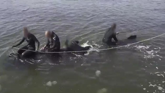 Në pamjet e publikuara në rrjet, duket momenti kur përgatitet një nga dronët nën ujorë nga pjesëtarë të shërbimit sekret të Ukrainës.