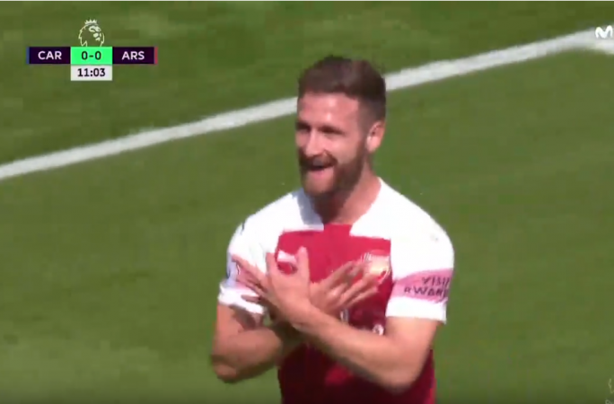 Arsenal momentalisht falë Shkodran Mustafit po udhëheq ndeshjen kundër Cardiff, e vlefshme për javën e katërt të “Premier League”.