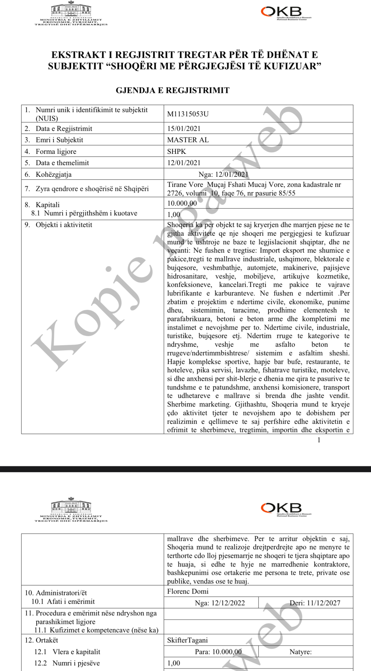 Sipas policisë, ata janë Florenc Domi administrator i subjektit tregtar dhe Agim Domi magazinier pranë subjektit tregtar “Master AL”.