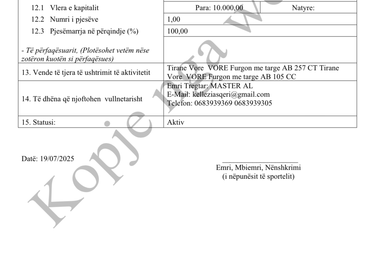 Materialet procedurale i kaluan Prokurorisë së Juridiksionit të Përgjithshëm Tiranë, për veprime të mëtejshme për veprat penale “Shkelja e të drejtave të pronësisë industriale”, “Falsifikimi i vulave, stampave ose formularëve”, “Fshehja e të ardhurave”, “Mospagimi i taksave dhe tatimeve”, “Punësim i paligjshëm” dhe “Importi, prodhimi, shitja, ruajtja e ushqimeve të rrezikshme për shëndetin ose jetën e njerëzve”.