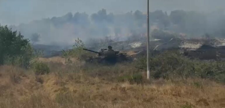 Siç shihet nga pamjet e siguruara për BalkanWeb nga gazetarja Marsela Topi, përmes ish-repartit, flakët kanë përfshirë dhe një tank të vjetër që ndodhet në ambientet e jashtme të repartit si dhe të tjera pajisje.