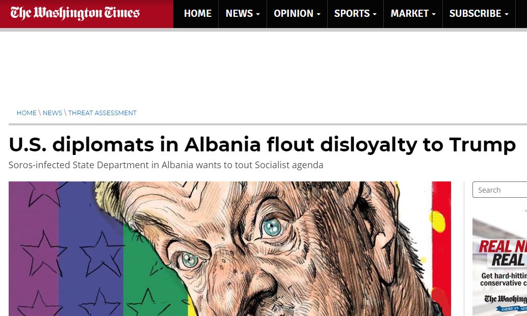 Prestigjozja amerikane Washington Times, i ka kushtuar një artikull diplomatëve të SHBA në Shqipëri duke shkruar se ata po punojnë dukshëm kundër Presidentit Donald Trump.