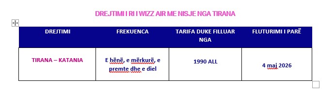 Shitja e biletave fillon më 30 janar, ndërsa fluturimi i parë do të realizohet më 4 maj. Çmimet fillojnë nga 19.99 EUR / 1,990 ALL, duke përforcuar angazhimin e Wizz Air për udhëtime ajrore të përballueshme.