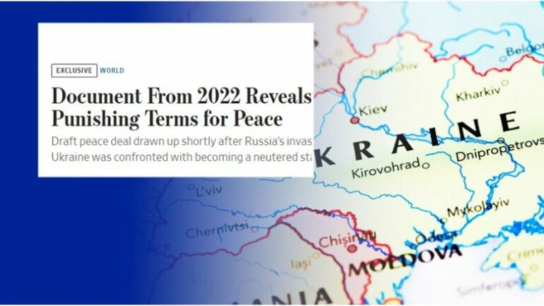 Megjithatë, në vitin 2022, qëndrimet e të dyja palëve ishin të ndryshme. Dokumenti tregon se negociatorët rusë dhe ukrainas kanë shqyrtuar lëshime të ndryshme në javët e para të luftës. Në projekt-marrëveshje thuhet se Ukraina, megjithëse i lejohet të aspirojë anëtarësimin në Bashkimin Evropian, nuk duhet t’i bashkohet aleancave ushtarake si NATO.