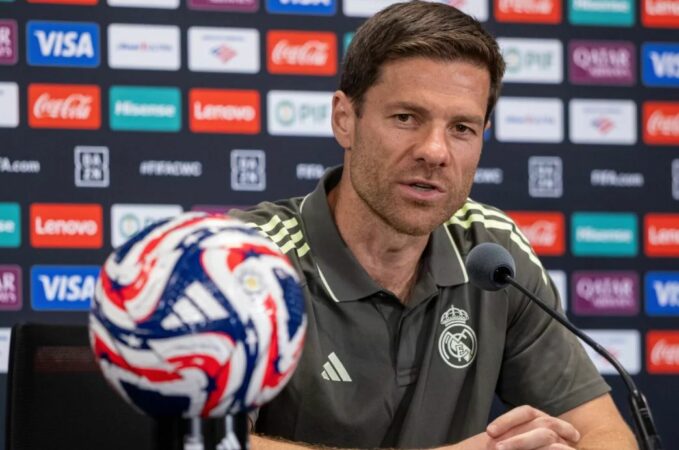 Xabi Alonso, trajneri i Real Madrid, iu përgjigj pyetjeve të gazetarëve para ndeshjes ndaj Juventusit (Kupa e Botës për Klube).