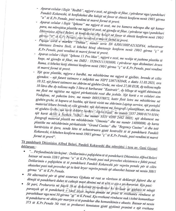 Gjykata thotë se krijoi bindjen bazuar në prova e fakte, sic janë përgjimet audio dhe video mes të panderhueve me të infiltruarin, ekspertimi i telefonit të Arsen Ramës, si dhe rrëfimet e dëshmitarëve se Fredi Beleri dhe Pandeli Kokaveshi e kanë kryer veprën penale të korrupsionit zgjedhor. Beleri është dënuar me 2 vite burgim, pasi premtoi 40 mijë lekë për 8 vota, ndërsa Kokaveshi që ia dorëzoi shumën e parave të infiltruarit është dënuar me shërbim prove. Pas ankimimit të të pandehurve, kundër vendimit të gjykatës së posaçme, cështja pritet të shqyrtohet në Apelin e Posaçëm.